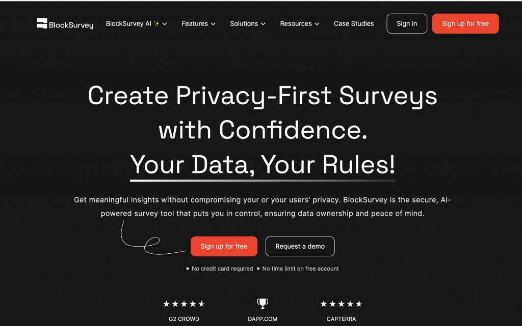 BlockSurvey, another FormDr alternative is a privacy-focused, HIPAA-compliant form builder that securely collects Protected Health Information (PHI). Using advanced end-to-end encryption ensures secure data collection and storage. With this FormDr alternatives, you can securely gather patient feedback, collect payments, manage employee information, store centralized health data, schedule appointments, obtain digital signatures, and effortlessly gain patient consent. Let’s have a quick look at this FormDr replacement: