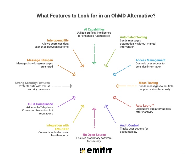• Positions Emitrr as the best overall OhMD alternative due to AI workflow automation and powerful patient messaging tools at a cost-effective price.