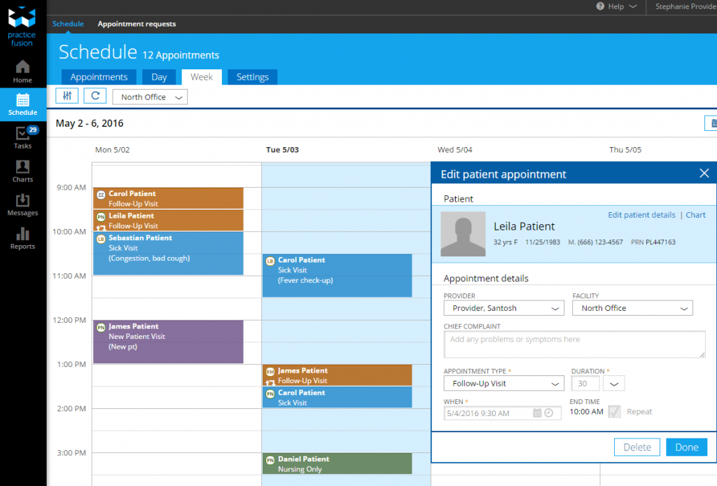 With its simple calendars, fast edits, and uncomplicated appointment workflows, Practice Fusion makes scheduling easy. Small practices looking for a simple layout without complicated operations will find it ideal. However, the platform does not provide advanced workflows, multi-location rules, or deeper automation beyond basic scheduling. Practices with high volume could soon reach their limit.
