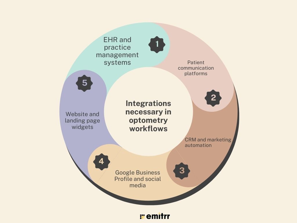 Optometrists tend to use EHR systems such as RevolutionEHR, Eyefinity, or Crystal PM to operate their practices. Emitrr’s method is integrated with these platforms, allowing automated communication and feedback without altering the way clinical records are handled. With integrations or workflow configurations, it syncs with your current systems so you can gather and respond to patient reviews without introducing additional administrative burden.