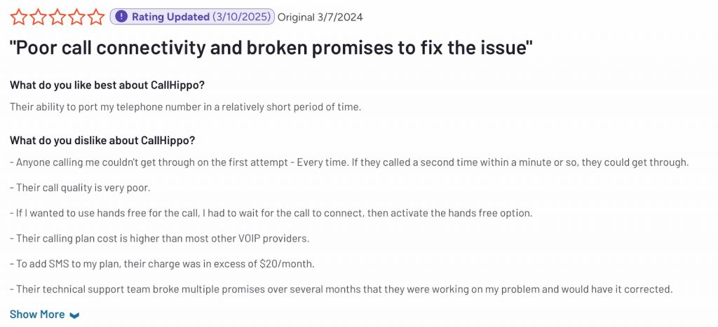 This phone system for healthcare product distributors is rated 3.3 on G2 and 3.6 on Capterra, and here’s what customers are saying about this auto-attendant VoIP for healthcare suppliers: