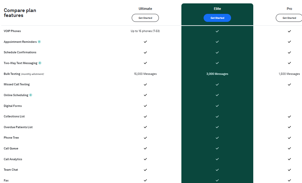 Weave offers three pricing plans: Ultimate, Elite & Pro plans. Here’s a quick look at what features these plans offer: